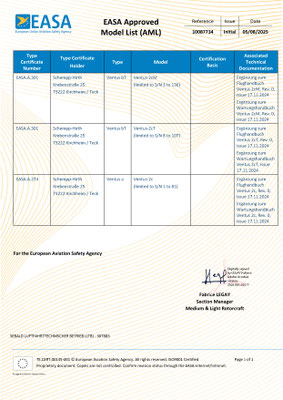 Heute haben wir die Urkunde zur neuen Genehmigung erhalten. Eine wesentliche Änderung gegenüber der bisherigen Zulassung ist nun die Möglichkeit, Komponenten für gewerblich oder kommerziell (AOC) genutzte Luftfahrzeuge instand zu halten.